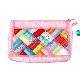 화려한 색상의 모시 천 위에 한국의 전통문양인 조각보를 디자인한 파우치입니다.