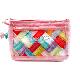화려한 색상의 모시 천 위에 한국의 전통문양인 조각보를 디자인한 파우치입니다.