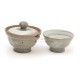 분청다기로 태토의 거친 느낌이 잘 살아 있어서 투박하면서도 소박한 느낌을 주는 개인용 다기 세트입니다.