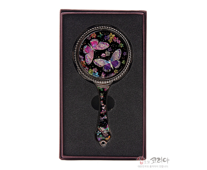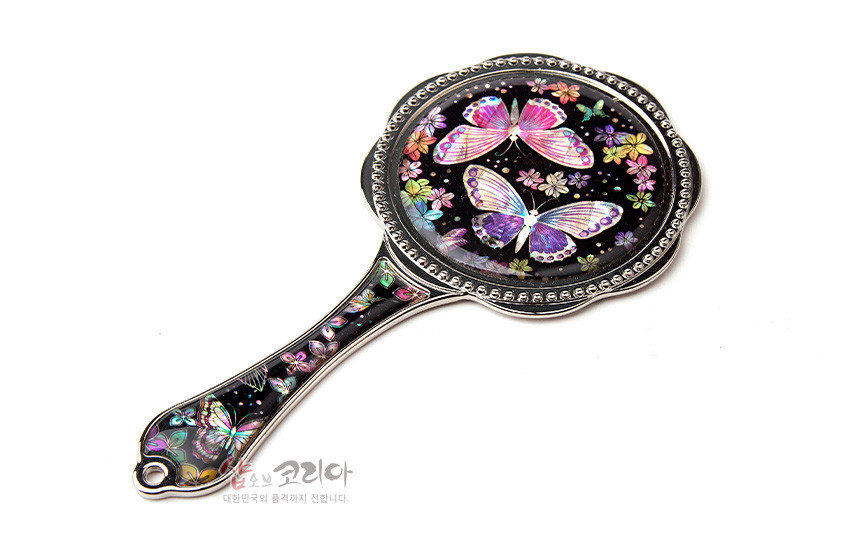 나전 손잡이 거울- 꽃과나비