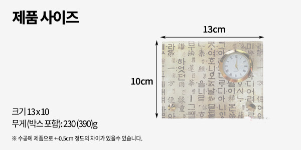 가로 : 13cm. 세로 : 10cm. 무게 : 230(박스390)g