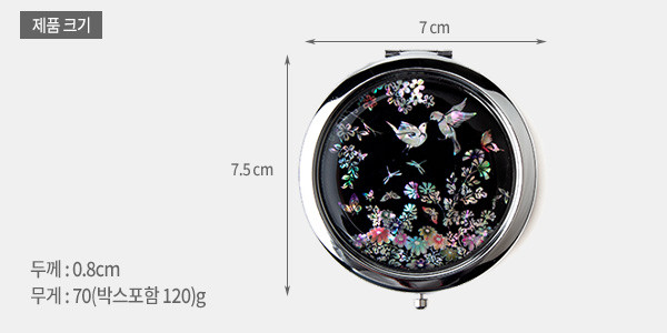자개(조개껍질 또는 전복껍질을 얇게 저며서 만든 모양)은 빛을 비추는 각도에 따라 그 색과 빛이 다르게 발합니다.